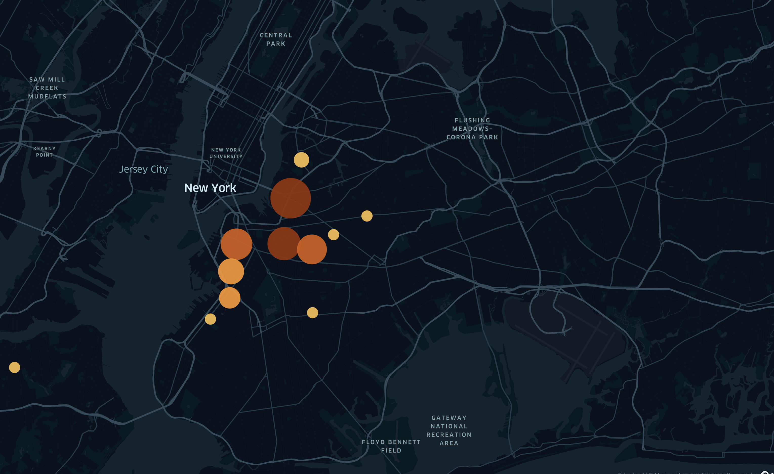 The last part is to now visualize the data on kepler, which will give me more insight than the simple Awesome Tables map. I downloaded my Sheet as a csv file and plugged it into kepler. After some tinkering, my map came out like this: